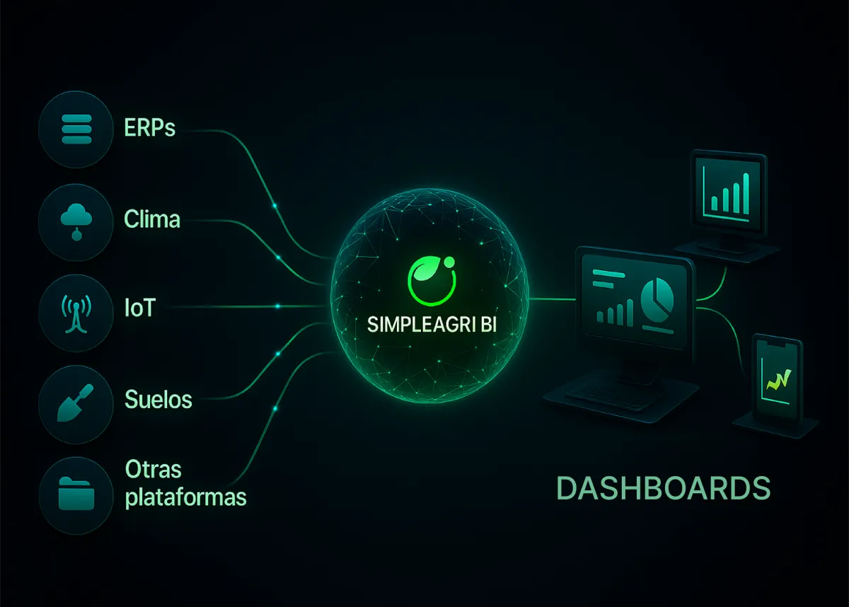 Sí. SimpleAgri BI se conecta con más de 15 fuentes de datos diferentes, incluyendo ERPs, Excels, software de campo y sensores. Lo que ya usas, lo puedes visualizar y centralizar en un solo lugar.